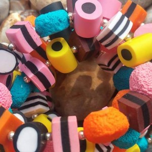 Quirky Statement Bracelet In The Style Of Liquorice All Sorts With Sterling Silver Beads Between